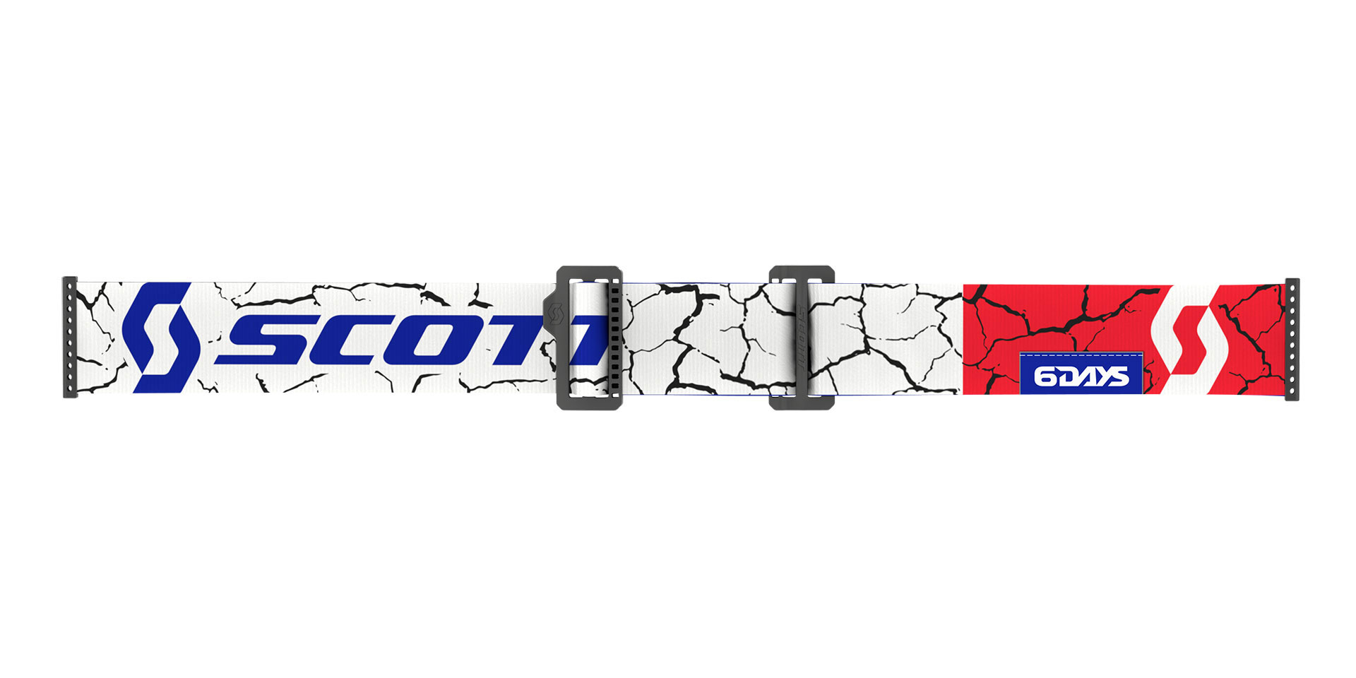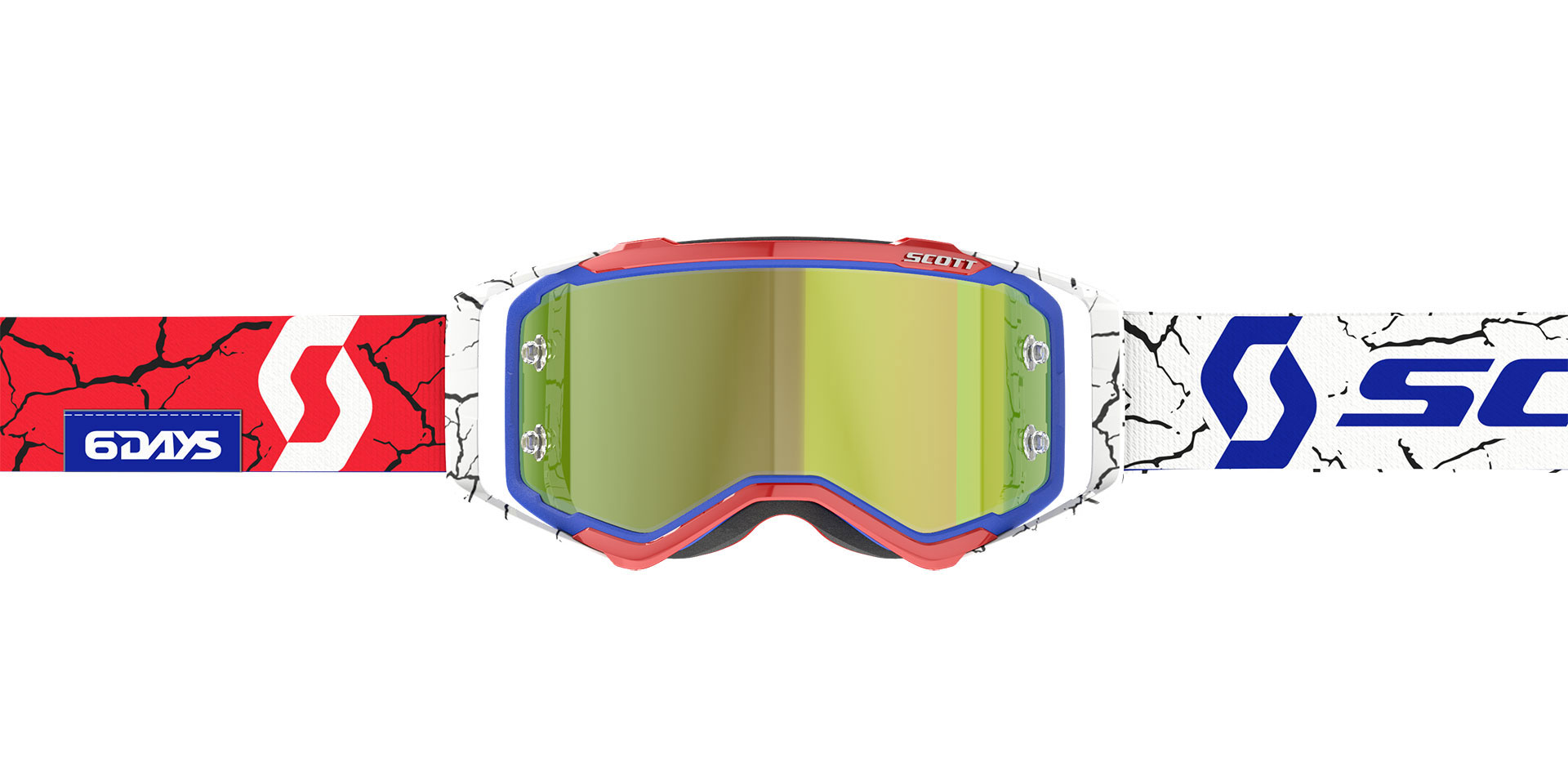The special edition SCOTT 6DAYS France Prospect goggle is out! This unique goggle features a detailed and eye-catching cracked earth graphic on the strap and the outriggers. A red, white and blue colorway represents the host nation, France and an official 6DAYS logo patch on the strap gives this goggle its stamp of authenticity. Fitted as standard with a high-performance Gold Chrome WORKS lens, this goggle not only has the ultimate look but is also fully race-ready. The 6DAYS France Prospect goggle also comes with a matching 6DAYS goggle bag to complete the package.